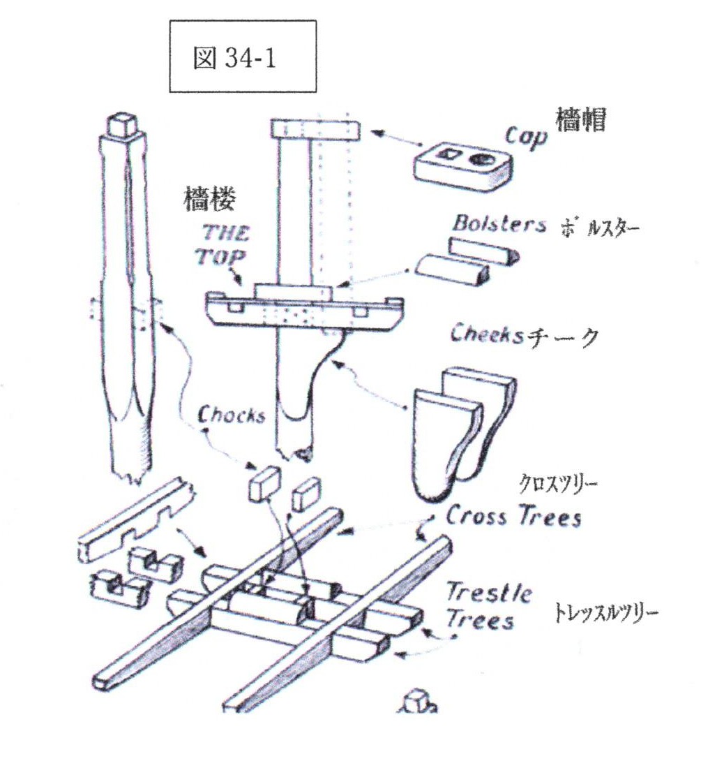 してから艤装が施されますが、艤装の内でも帆柱、帆桁の設計と製作は船殻の建造の延長線の内に入り、論文の中に取り